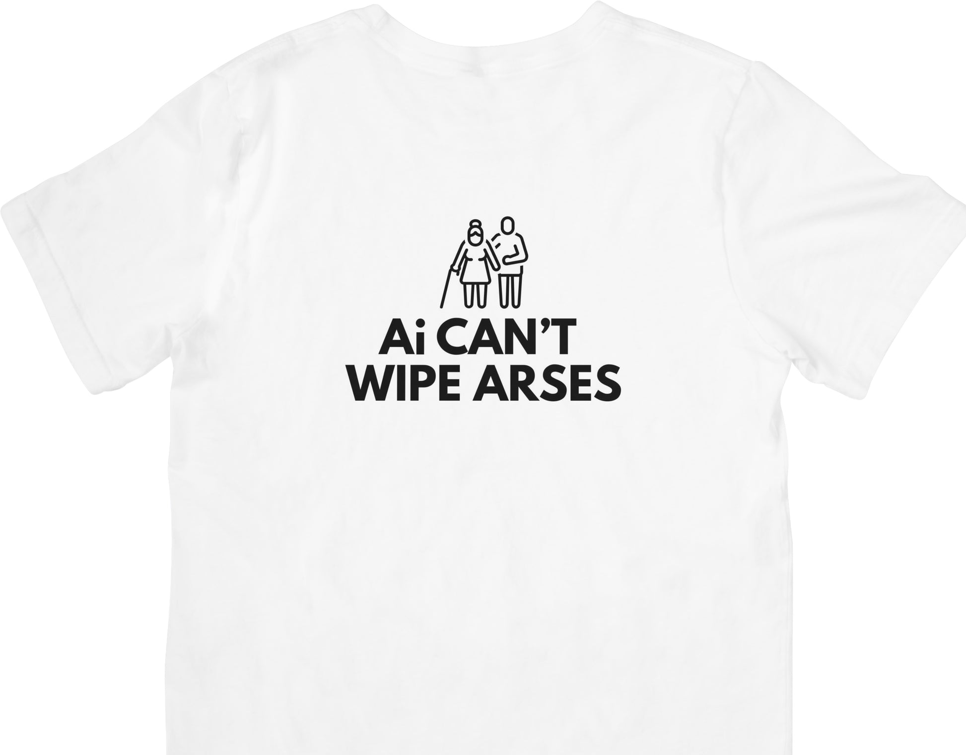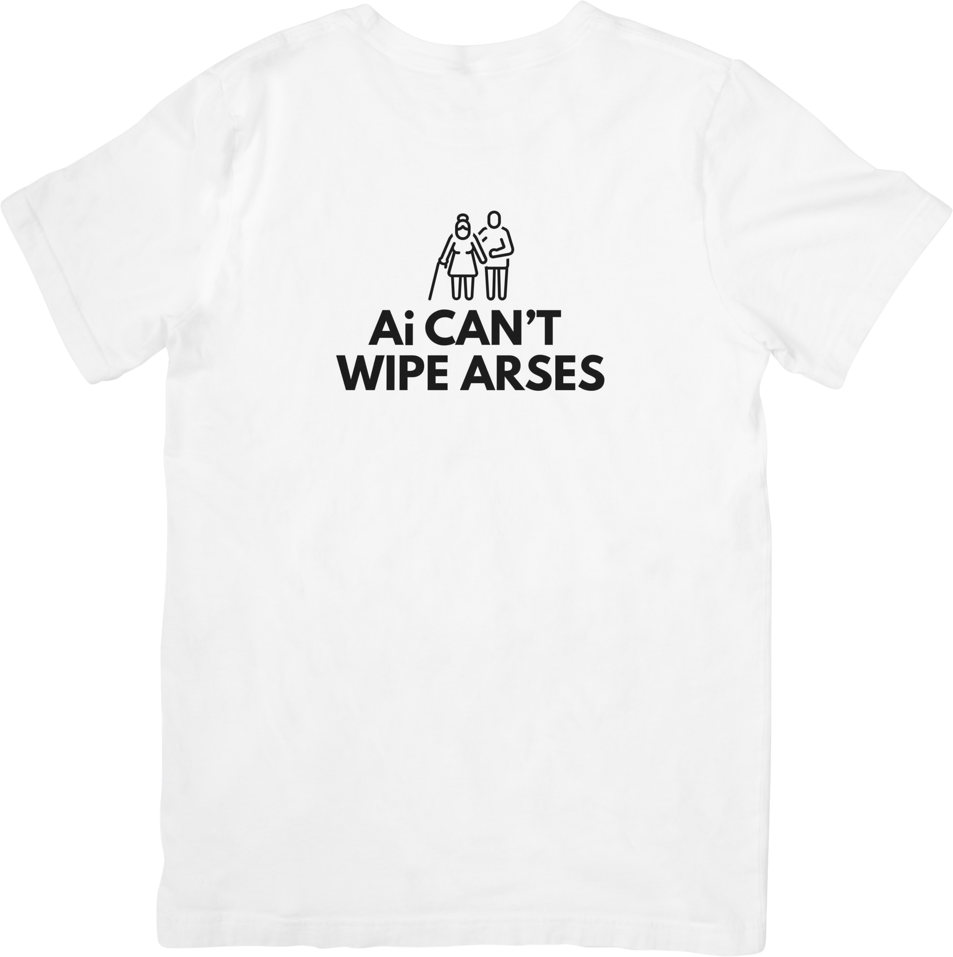 AI CAN’T WIPE ARSES – Care Worker Humour T-Shirt (Unisex Fit)